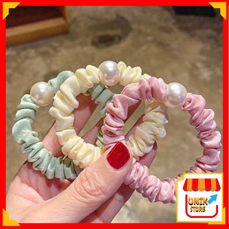 UNIK - F898 Ikat Rambut Aksen Mutiara / Kuncir Rambut Bahan Karet / Karet Fashion Wanita / Hair Tie