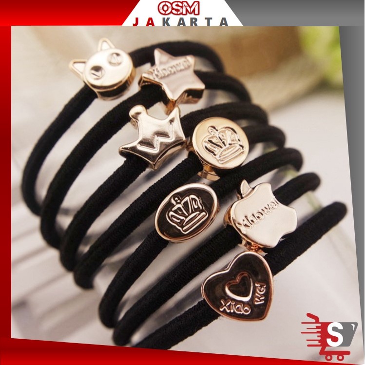 OSM JKT K620 Ikat Rambut Hitam Fashion Korea / Ikat Rambut Karakter Elastis / Kunciran Rambut