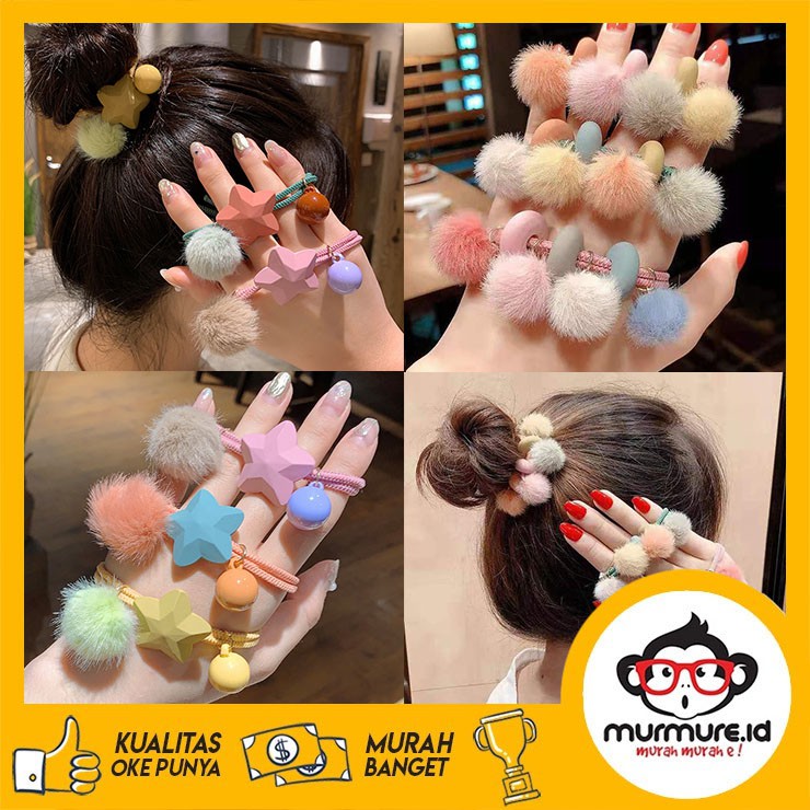 MURMURE.ID | IKAT RAMBUT KOREA SIMPLE MODEL POMPOM BINTANG KARET TALI RAMBUT WANITA HA070 HA071