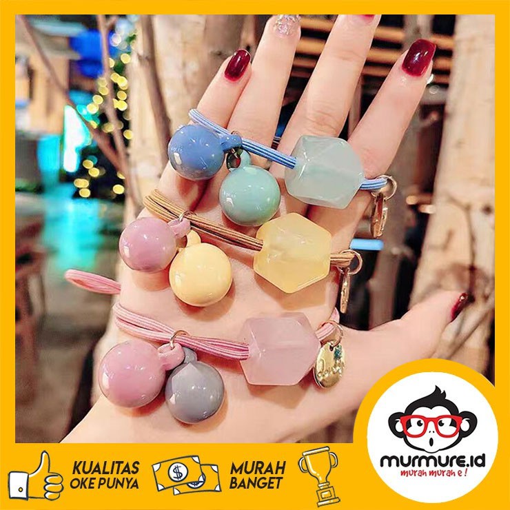 MURMURE.ID | IKAT RAMBUT KOREA SIMPLE MOTIF BULAT KOTAK PERMEN KARET TALI RAMBUT WANITA HA069